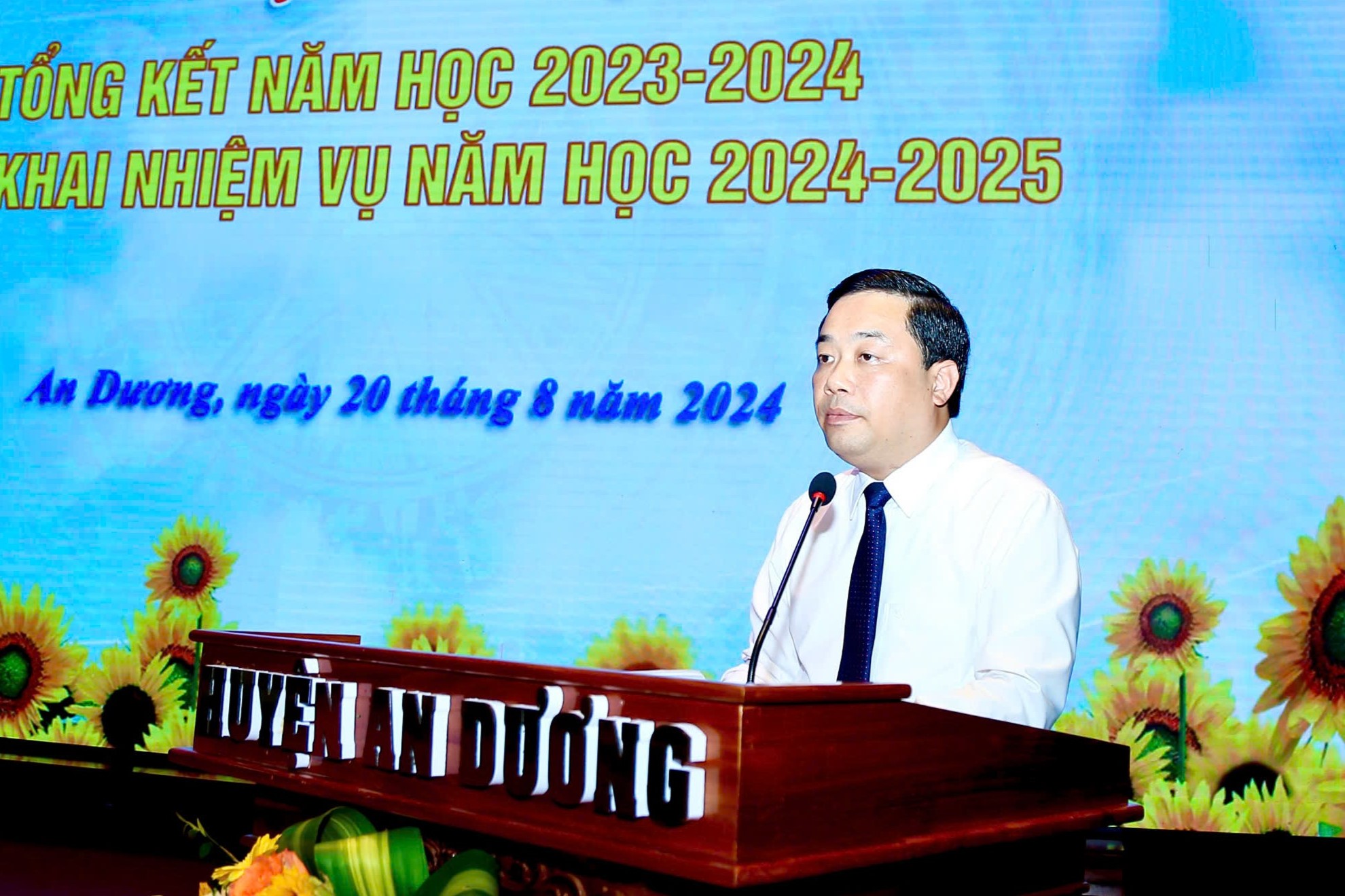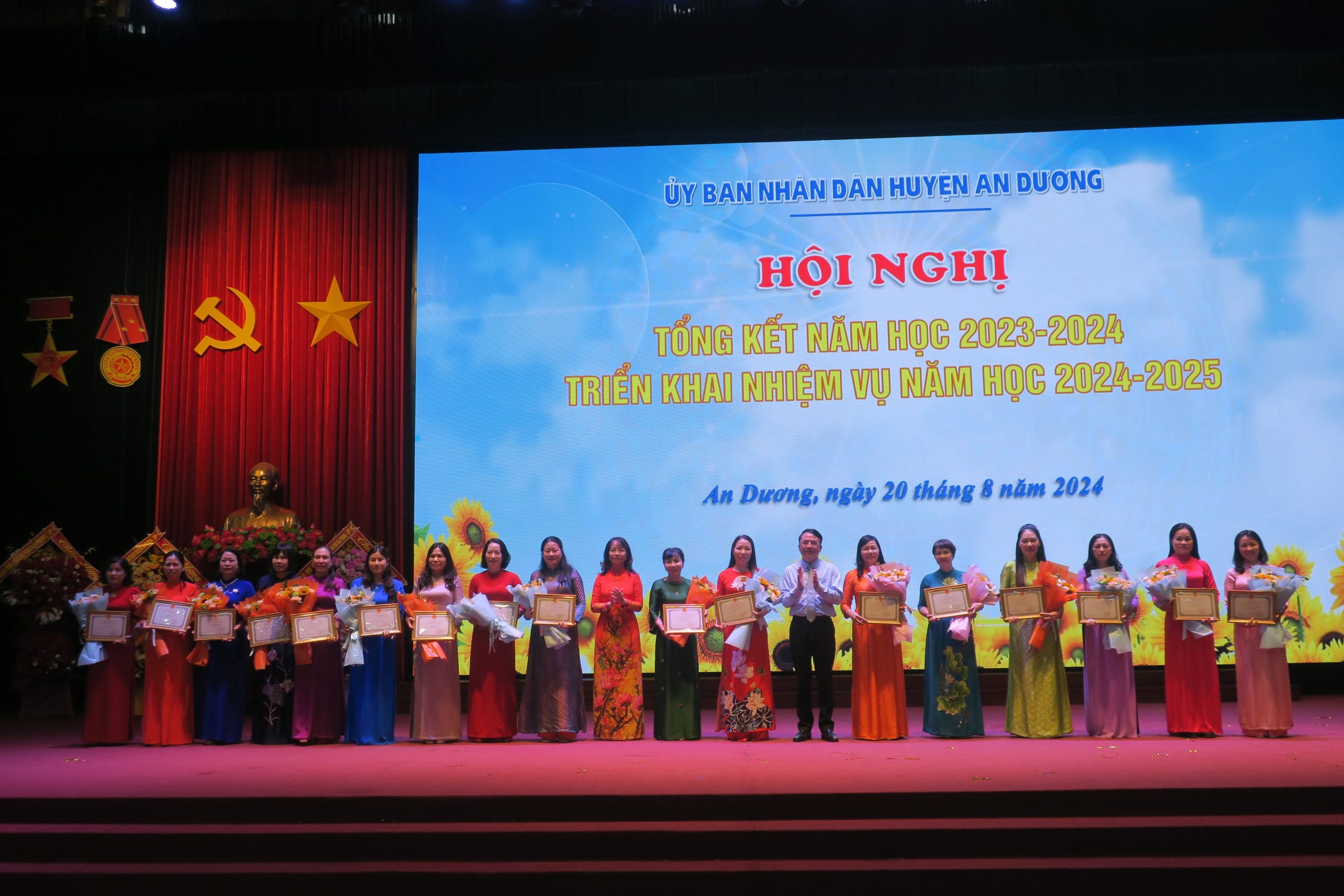Chiều 20/8, UBND huyện An Dương tổ chức Hội nghị tổng kết năm học 2023-2024, triển khai nhiệm vụ năm học 2024-2025. Dự Hội nghị có Phó Chủ tịch UBND thành phố Lê Khắc Nam cùng đại diện lãnh đạo các Sở, ngành, địa phương, đơn vị liên quan và đại diện nhà giáo, học sinh tiêu biểu của huyện.