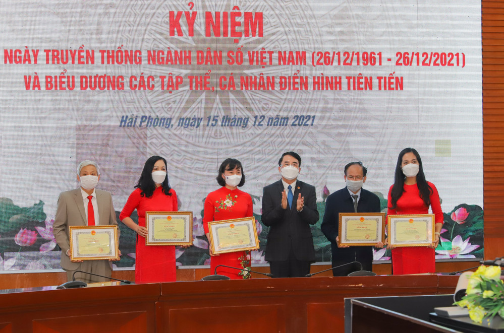 Nhân dịp này, Bộ Y tế quyết định tặng Kỷ niệm chương “Vì sự nghiệp dân số” cho 534 cá nhân thuộc thành phố Hải Phòng, tặng Cờ thi đua cho Chi cục Dân số và Kế hoạch hóa gia đình. UBND thành phố tặng Chi cục Dân số và Kế hoạch hóa gia đình thành phố bức trướng với nội dung “60 năm công tác Dân số – Kế hoạch hóa gia đình đồng hành vì sự phát triển bền vững của thành phố và đất nước”. UBND thành phố tặng Bằng khen cho 6 tập thể và 11 cá nhân nhân dịp kỷ niệm 60 năm ngày Truyền thống ngành Dân số Việt Nam; tặng Bằng khen cho 14 tập thể và 12 cá nhân có thành tích xuất sắc trong công tác Dân số Kế hoạch hóa gia đình năm 2021. Sở Y tế tặng Giấy khen cho 18 tập thể, 31 cá nhân nhân ngày Truyền thống ngành Dân số Việt Nam và tặng Giấy khen cho 5 tập thể, 10 cá nhân có thành tích hoàn thành tốt nhiệm vụ công tác Dân số – Kế hoạch hóa gia đình năm 2021.