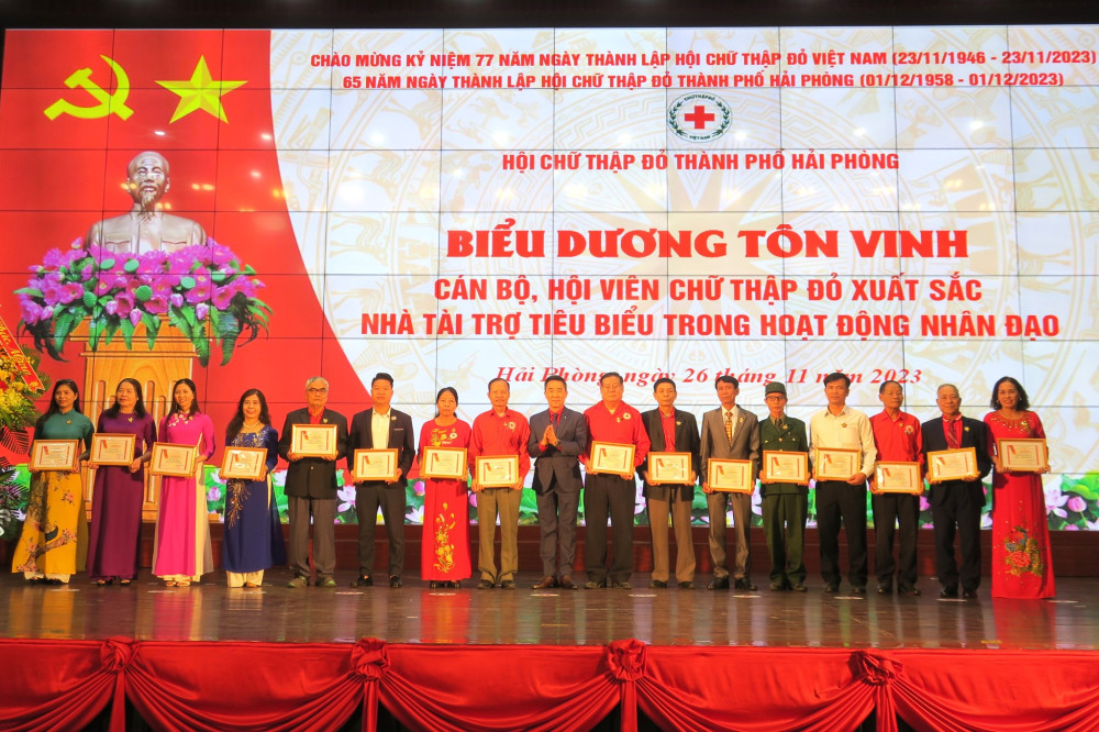 Nhân dịp này, Trung ương Hội Chữ thập đỏ Việt Nam trao tặng Kỷ niệm chương cho 23 cán bộ, hội viên tiêu biểu, xuất sắc. UBND thành phố trao giấy ghi ơn cho 26 nhà tài trợ tiêu biểu trong hoạt động nhân đạo từ năm 2021-2023. Hội Chữ thập đỏ thành phố tặng danh hiệu cán bộ Hội xuất sắc cho 32 hội viên, tặng danh hiệu Hội viên chữ thập đỏ tiêu biểu cho 30 hội viên.