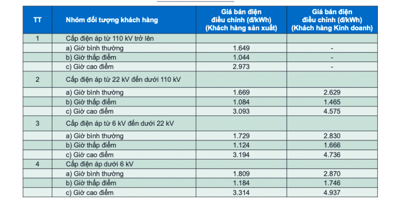 Giá bán lẻ điện cho nhóm đối tượng khách hàng sản xuất và kinh doanh