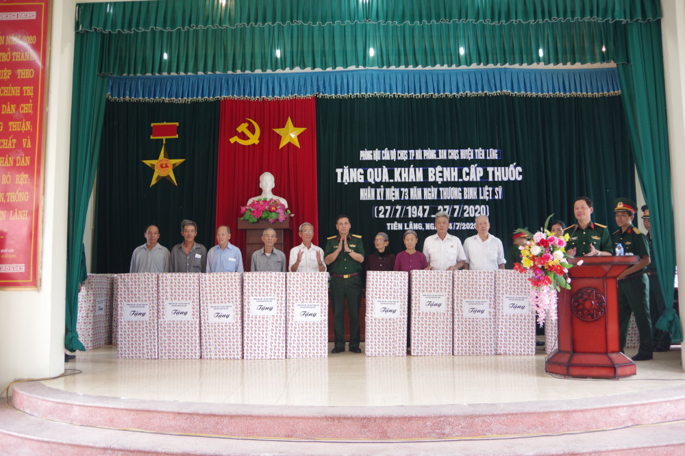 Sáng 4/7, tại Trạm Y tế xã Tiên Minh (huyện Tiên Lãng), Phòng Hậu cần – Bộ Chỉ huy Quân sự (CHQS) thành phố Hải Phòng đã phối hợp với Ban CHQS huyện Tiên Lãng tổ chức khám bệnh và cấp thuốc miễn phí, tặng quà cho các đối tượng chính sách trên địa bàn huyện.