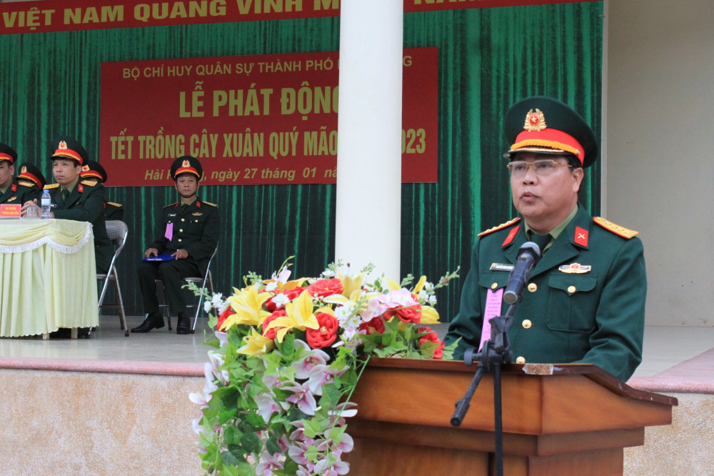 Phát biểu tại Lễ phát động, Đại tá Nguyễn Minh Quang, Chỉ huy Trưởng Bộ CHQS thành phố, yêu cầu các cơ quan, đơn vị cần tiếp tục tuyên truyền giáo dục sâu rộng về ý nghĩa, tác dụng thiết thực của phong trào trồng cây, nâng cao nhận thức cho cán bộ, chiến sĩ về ý thức tham gia trồng cây và chăm sóc cây, bảo vệ cây xanh, bảo vệ rừng. Phấn đấu mỗi cán bộ chiến sĩ ít nhất trồng từ 1 đến 2 cây xanh trên một năm, bảo đảm cây phát triển tốt. Gắn việc trồng cây với các mục tiêu phát triển kinh tế-xã hội của địa phương và thành phố; đồng thời giải quyết các vấn đề về an sinh xã hội, bảo vệ môi trường và xây dựng doanh trại chính quy xanh, sạch, đẹp, xây dựng môi trường văn hoá tốt đẹp, lành mạnh.