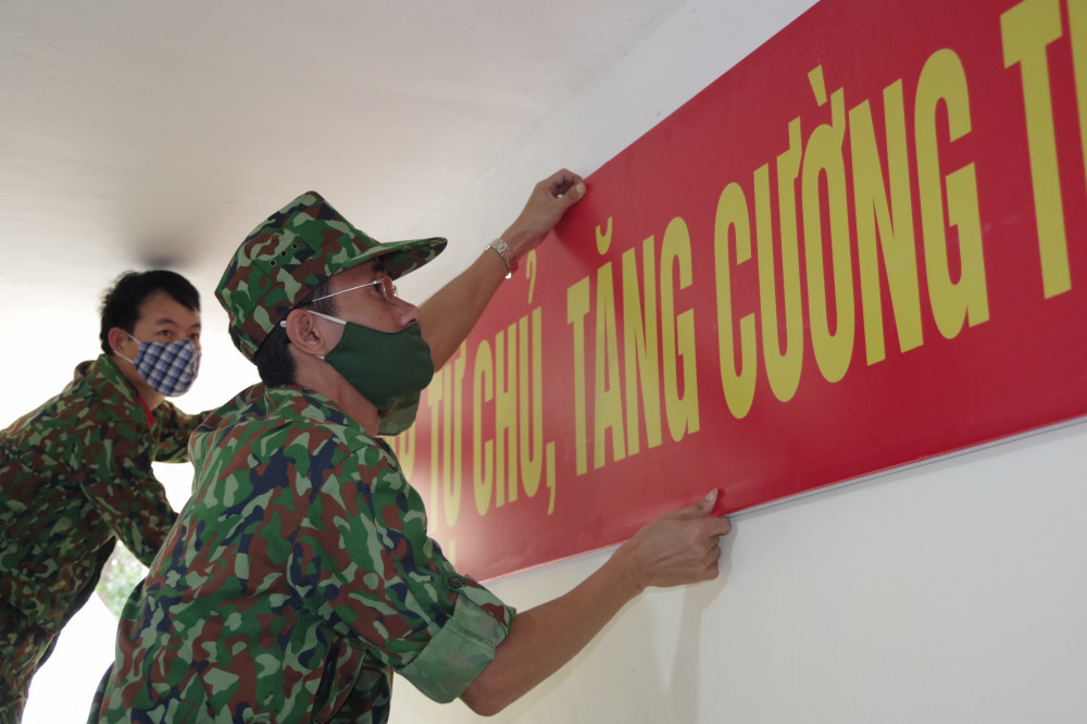 Cũng trong những ngày này, cùng với các lực lượng tích cực chuẩn bị phục vụ cho diễn tập, thì công tác trang trí tuyên truyền bảo đảm cho diễn tập cũng đang được gấp rút hoàn thiện. Thiếu tá QNCN Tống Viết Trọng, Nhân viên Ban Tuyến huấn (Phòng Chính trị, Bộ CHQS thành phố Hải Phòng), chia sẻ: Được giao nhiệm vụ làm công tác trang trí tuyên truyền phục vụ cho diễn tập KVPT thành phố năm 2021, tôi đã chủ động phối hợp với các lực lượng tích cực thực hiện với tinh thần trách nhiệm cao nhất. Đến nay, công tác trang trí tuyên truyền phục vụ cho diễn tập, cơ bản đã hoàn thành, bảo đảm sẵn sàng cho diễn tập KVPT thành phố.