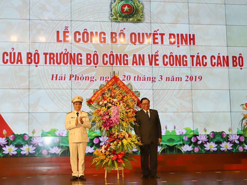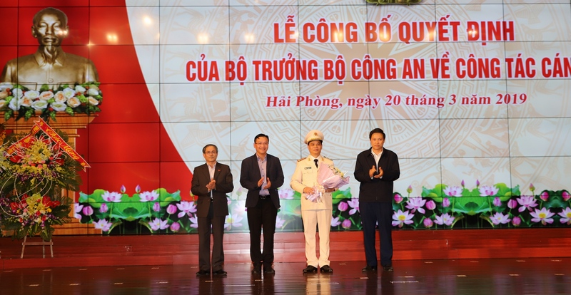 Chiều 20-3, Cục Tổ chức cán bộ – Bộ Công an phối hợp với CATP Hải Phòng tổ chức Lễ công bố Quyết định của Bộ trưởng Bộ Công an về công tác cán bộ tại CATP Hải Phòng. Thượng tướng Nguyễn Văn Thành, Ủy viên TW Đảng, Thứ trưởng Bộ Công an chủ trì buổi lễ. Cùng dự về phía Bộ Công an có Trung tướng Phạm Quốc Cương, Ủy viên Đảng ủy CATW, Bí thư Đảng ủy, Tư lệnh CSCĐ; Đại tá Trần Đức Tuấn, Phó Chánh văn phòng Bộ Công an; Đại tá Đỗ Xuân Ngọc, Phó cục trưởng Cục Tổ chức cán bộ – Bộ Công an; Trung tướng Đoàn Duy Khương, Giám đốc CATP Hà Nội; Thiếu tướng Trần Minh Hưởng, Giám đốc Học viện CSND; đại diện lãnh đạo Công an các tỉnh: Hải Dương, Hòa Bình, Tuyên Quang, Thừa Thiên – Huế, Đắc-Lắc. Về phía lãnh đạo thành phố có đồng chí Nguyễn Văn Tùng, Phó Bí thư Thành ủy, Chủ tịch UBND TP; đại diện lãnh đạo Ban Tổ chức Thành ủy, Ban Nội chính Thành ủy, Thanh tra thành phố, TAND TP, Viện KSND TP; Bộ CHQS TP, Bộ Tư lệnh Bộ đội biên phòng Hải Phòng, Cục thi hành án dân sự thành phố. Cùng dự còn có các đồng chí trong Ban thường vụ Đảng ủy, Ban giám đốc CATP; Thiếu tướng Đỗ Hữu Ca, nguyên Giám đốc CATP; Thiếu tướng Lê Quốc Trân, nguyên Giám đốc Cảnh sát PCCC thành phố; đại diện lãnh đạo Công an các đơn vị, địa phương trên địa bàn thành phố.