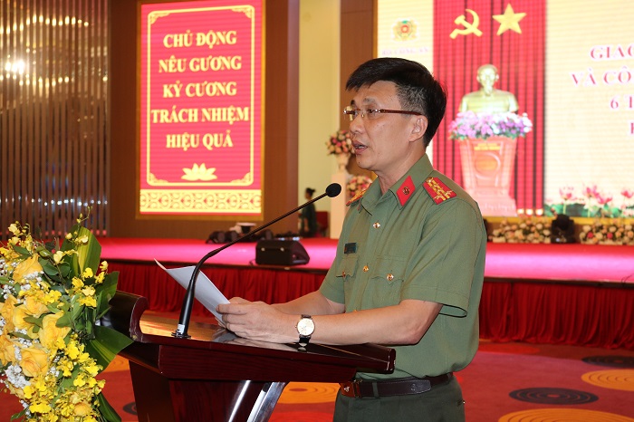 Đồng chí Đại tá Nguyễn Văn Hường, Phó Cục trưởng Cục X03 – Bộ Công an báo cáo kết quả 6 tháng