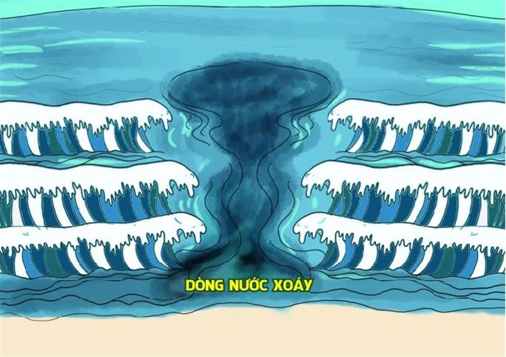 Dòng nước xoáy là một dòng nước chảy mạnh từ bờ ra biển. Nguyên nhân của hiện tượng này là do khi sóng biển liên tục đưa nước vào bờ, sẽ tạo thành một dòng xoáy chảy mạnh ngược từ bờ ra biển.