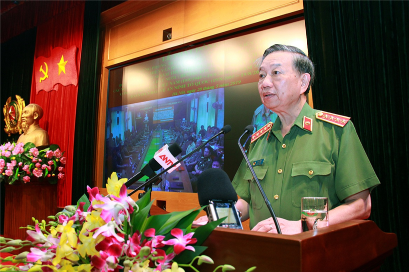 Phát biểu chỉ đạo, Đại tướng Tô Lâm, Bộ trưởng Bộ Công an nhấn mạnh, thời gian tới, đặc biệt năm 2020 là năm diễn ra nhiều ngày kỷ niệm lớn và các sự kiện chính trị quan trọng của đất nước, của lực lượng CAND, tình hình thế giới và khu vực tiếp tục có nhiều diễn biến phức tạp tác động đến công tác bảo vệ ANQG, giữ gìn TTATXH.