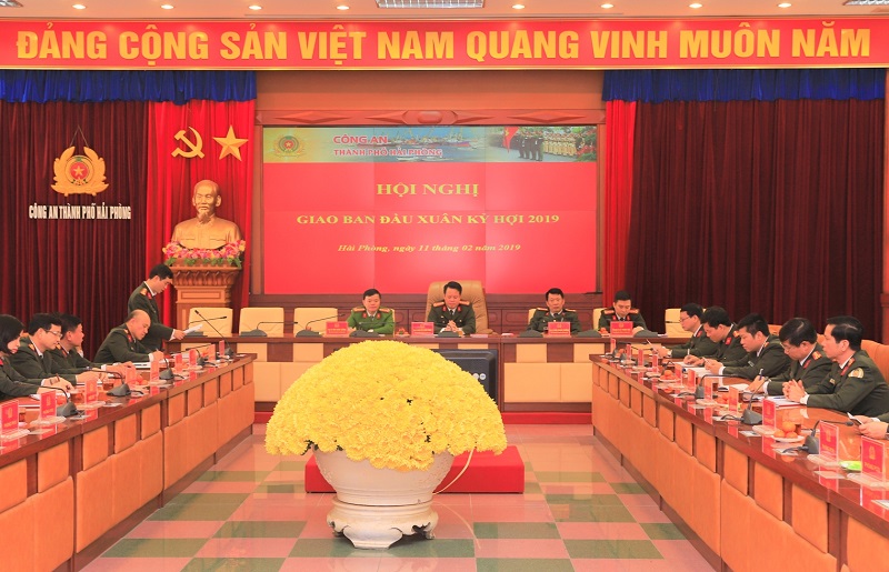 Sáng 11/02/2019, tại Hà Nội, Bộ Công an tổ chức Hội nghị giao ban trực tuyến với Công an các đơn vị, địa phương để đánh giá kết quả công tác của toàn lực lượng Công an nhân dân triển khai thực hiện các chỉ đạo của lãnh đạo Đảng, Nhà nước và của Bộ Công an bảo đảm an ninh, trật tự (ANTT) phục vụ nhân dân vui Xuân, đón Tết Nguyên đán Kỷ Hợi 2019. Đại tướng Tô Lâm, Ủy viên Bộ Chính trị, Bí thư Đảng ủy Công an Trung ương, Bộ trưởng Bộ Công an chủ trì Hội nghị. Dự hội nghị tại điểm cầu CATP Hải Phòng có Đại tá Nguyễn Quốc Hùng, Phó giám đốc phụ trách CATP; các đồng chí trong BTV Đảng ủy, Ban giám đốc CATP; lãnh đạo Công an các đơn vị, địa phương.