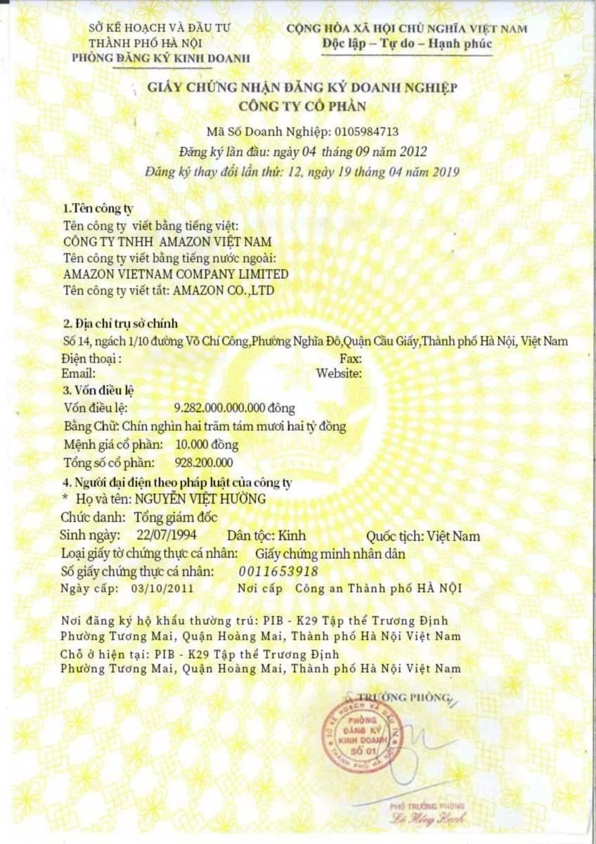 Thông tin thêm, cơ quan này cho biết, mới đây, có trường hợp một doanh nghiệp lấy tên gọi “Công ty TNHH Amazon Việt Nam” với địa chỉ trên Giấy đăng ký kinh doanh tại Số 14, ngách 1/10 đường Võ Chí Công, Phường Nghĩa Đô, Quận Cầu Giấy, Hà Nội để lừa đảo.