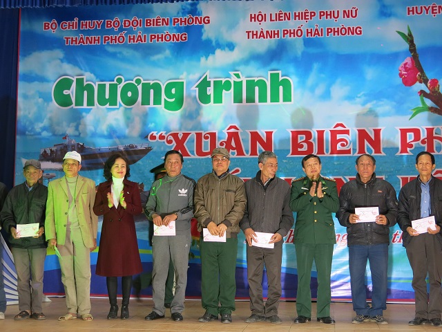 Bộ đội Biên phòng Hải Phòng phối hợp với Hội Liên hiệp phụ nữ thành phố Hải Phòng trao quà cho các gia đình có hoàn cảnh đặc biệt khó khăn trong chương trình “Xuân biên phòng ấm lòng dân đảo”