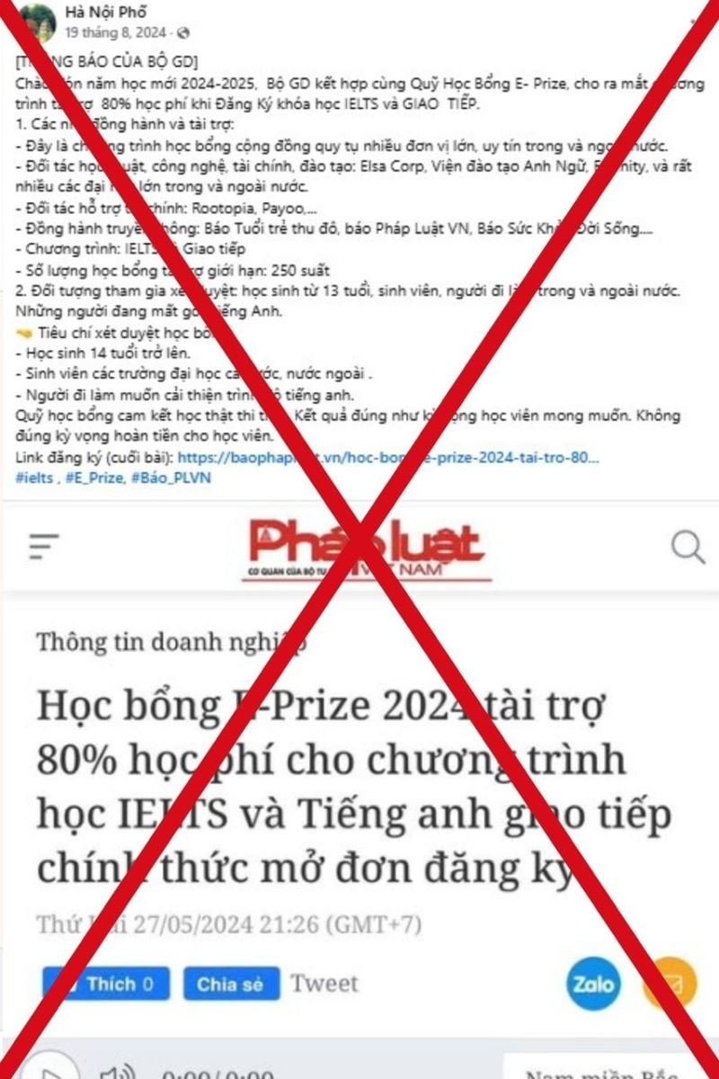 Theo Bộ Giáo dục và Đào tạo (GD&ĐT), những ngày qua, trên mạng xã hội, xuất hiện nhiều thông báo liên quan đến các chương trình học bổng tiếng Anh được cho là “thông báo của Bộ GD”, “Bộ GD triển khai”… Bộ Giáo dục và Đào tạo khẳng định các thông tin này là hoàn toàn giả mạo. Đồng thời, khẳng định Bộ không triển khai, không phối hợp tổ chức các chương trình, hoạt động này.