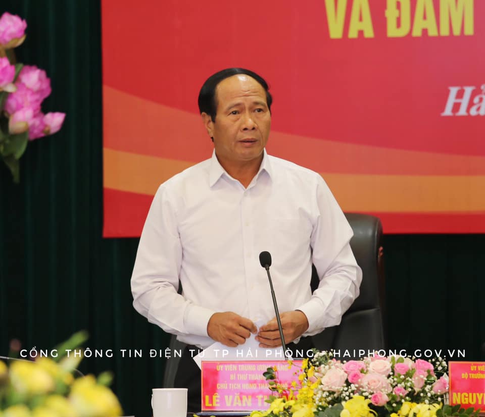 Thay mặt lãnh đạo thành phố, đồng chí Bí thư Thành ủy Lê Văn Thành cảm ơn Đoàn công tác đã dành thời gian để làm việc với thành phố về các lĩnh vực phát triển kết cấu hạ tầng giao thông, đồng thời chia sẻ nhiều ý kiến sâu sắc, cụ thể cùng với thành phố Hải Phòng gắn chặt việc triển khai với thực hiện Nghị quyết 45. Đồng chí Bí thư Thành ủy ghi nhận thời gian qua Bộ GTVT đã rất quan tâm, tạo điều kiện và đồng hành cùng thành phố, có thể nói chưa bao giờ thành phố Hải Phòng có được nhiều công trình giao thông có ý nghĩa đặc biệt quan trọng phục vụ phát triển kinh tế xã hội như thời gian gần đây, Bí thư Thành ủy Lê Văn Thành nhấn mạnh. Đồng chí cho biết, tới đây thành phố sẽ cam kết tập trung cao để đảm bảo triển khai kịp thời theo tinh thần chỉ đạo của Bộ GTVT, góp phần thúc đẩy phát triển kinh tế xã hội không chỉ riêng của Hải Phòng mà còn là động lực phát triển của cả vùng và khu vực miền Bắc.