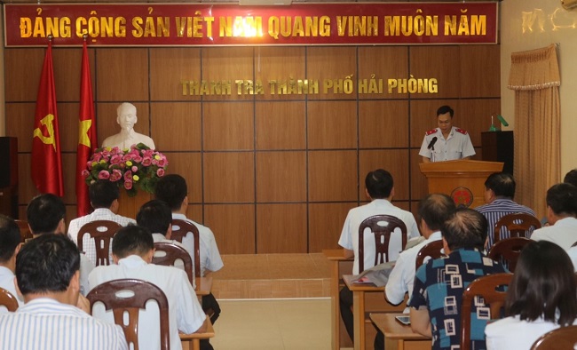 Sáng 1/7, Thanh tra thành phố Hải Phòng công bố Quyết định số 156/QĐ-TTTP ngày 1/7/2019 của Chánh Thanh tra thành phố về việc bổ nhiệm Chánh Văn phòng Thanh tra thành phố.