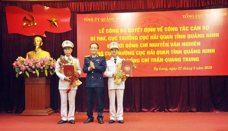Theo các quyết định của Tổng cục trưởng Tổng cục Hải quan về việc bổ nhiệm có thời hạn ông Nguyễn Văn Nghiên, Phó Cục trưởng Cục Hải quan Quảng Ninh giữ chức Cục trưởng Cục Hải quan Quảng Ninh; bổ nhiệm có thời hạn ông Trần Quang Trung, Trưởng Phòng Tổ chức cán bộ – Thanh tra Cục Hải quan Quảng Ninh giữ chức Phó Cục trưởng Cục Hải quan Quảng Ninh.