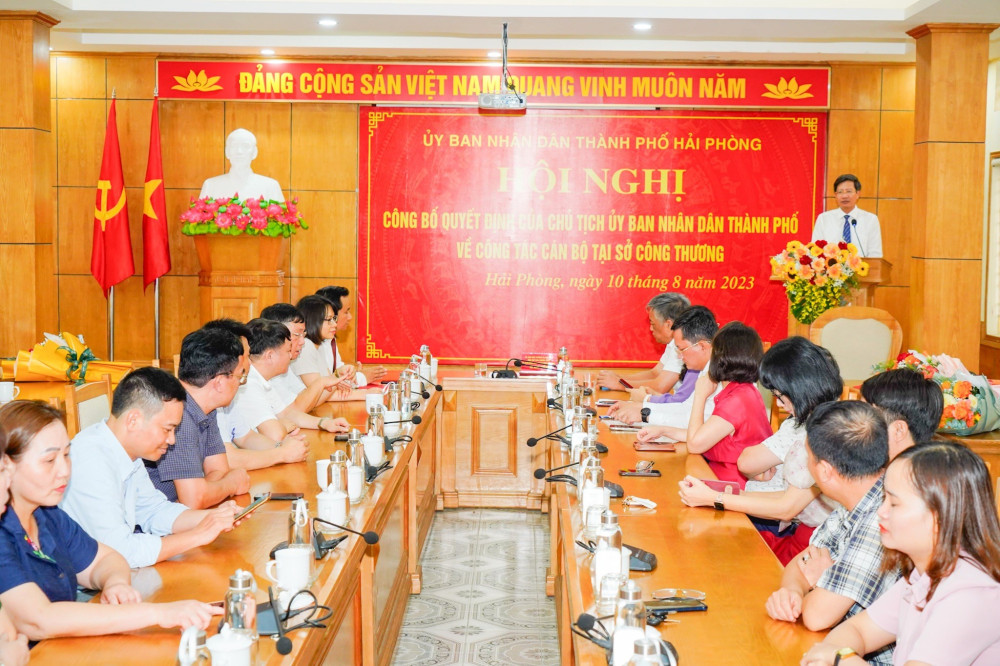 Chiều 10/8, Phó Chủ tịch Thường trực UBND thành phố Lê Anh Quân chủ trì Hội nghị công bố Quyết định của Chủ tịch UBND thành phố về công tác cán bộ tại Sở Công Thương.