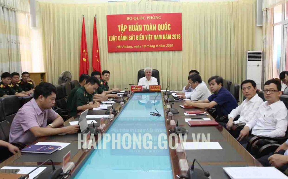 Sáng 18/9 tại Hà Nội, Bộ Quốc phòng tổ chức Hội nghị trực tuyến Tập huấn Luật Cảnh sát biển Việt Nam tới 74 điểm cầu trong toàn quân. Trung tướng Nguyễn Tân Cương Thứ trưởng Bộ Quốc phòng chủ trì Hội nghị.