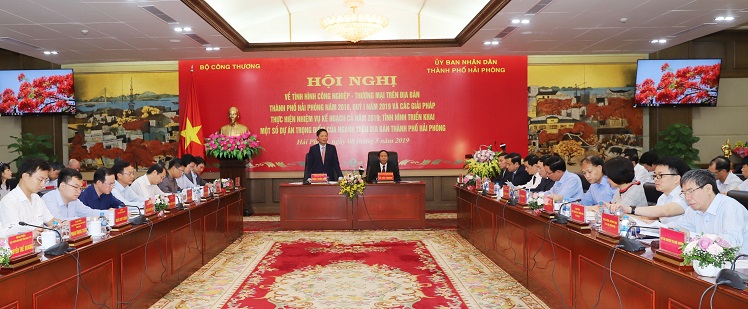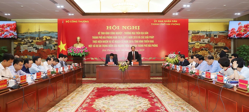 Sáng 8-5, tại Trung tâm hội nghị thành phố, Đoàn công tác của Bộ Công thương do Bộ trưởng Trần Tuấn Anh – Ủy viên Trung ương Đảng dẫn đầu, làm việc với lãnh đạo thành phố về tình hình công nghiệp – thương mại trên địa bàn Hải Phòng năm 2018, quý 1 năm 2019 và giải pháp thực hiện nhiệm vụ năm 2019.