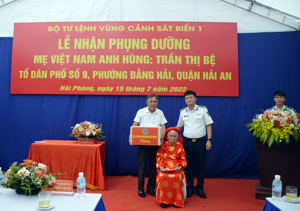 Trong chuỗi các hoạt động thiết thực Kỷ niệm 75 năm Ngày Thương binh liệt sỹ (27/7/1947-27/7/2022). Bộ Tư lệnh Vùng Cảnh sát biển 1 vừa tổ chức Lễ nhận phụng dưỡng suốt đời Mẹ Việt Nam anh hùng Trần Thị Bệ, trú tại Tổ dân phố số 9, phường Đằng Hải, quận Hải An.