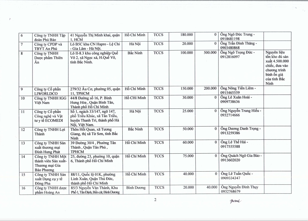Đề nghị các đơn vị sản xuất chủ động, có kế hoạch ổn định, tăng cường sản xuất, đáp ứng kế hoạch sử dụng, yêu cầu phòng, chống dịch bệnh của các Sở Y tế, bệnh viện và nhu cầu của nhân dân./.