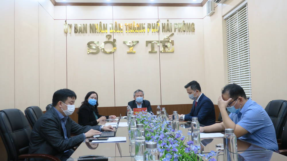 Tại điểm cầu Sở Y tế Hải Phòng, đồng chí Trần Quốc Chinh, Phó Giám đốc Sở Y tế cùng đại diện lãnh đạo các phòng, đơn vị y tế liên quan tham dự Hội nghị.