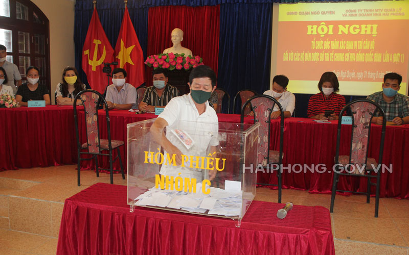 Chiều 31/8, tại trụ sở phường Đồng Quốc Bình, UBND quận Ngô Quyền phối hợp với Công ty TNHH MTV Quản lý và kinh doanh nhà Hải Phòng, Sở Xây dựng tổ chức bốc thăm lần 4 xác định vị trí căn hộ đối với các hộ dân được bố trí về chung cư HH4.