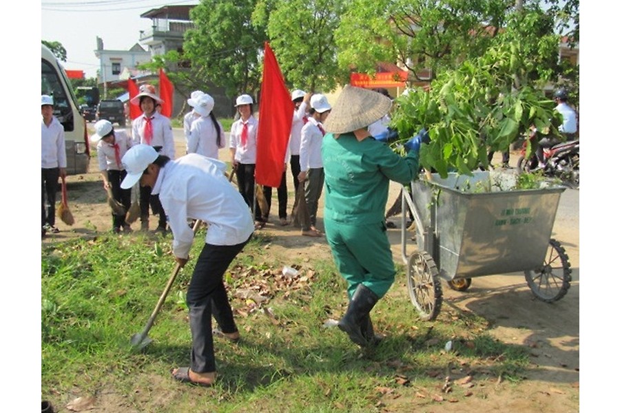Người dân dọn dẹp đường làng ngõ xóm sạch, đẹp ở xã Đoàn Xá (Kiến Thụy)