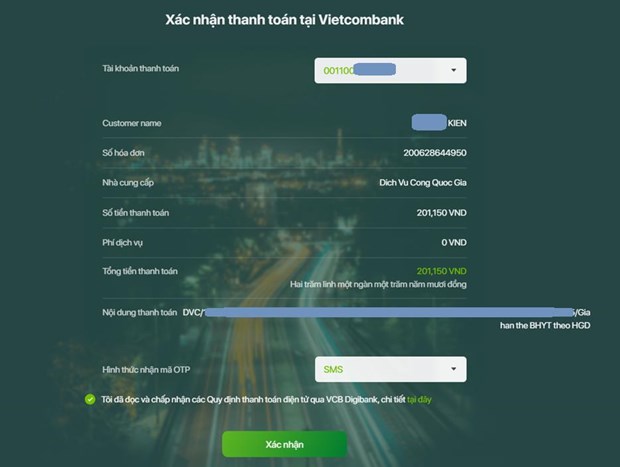 Bước 7: Hệ thống sẽ hiển thị lại thông tin thanh toán một lần nữa để bạn xác nhận. Nếu các thông tin đã chính xác, bạn click vào nút “Xác nhận“.