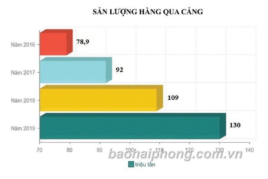 Dự báo lượng hàng thông qua qua các Cảng Hải Phòng đến năm 2020 là 110 triệu tấn, nhưng kết thúc năm 2019 sản lượng đã đạt 130 triệu tấn. Điều này cho thấy sự tăng trưởng mạnh mẽ ở các khối cảng Hải Phòng, trong đó, riêng khối cảng, bến thủy nội địa có lượng hàng hóa thông qua tăng gấp đôi so với năm 2018.