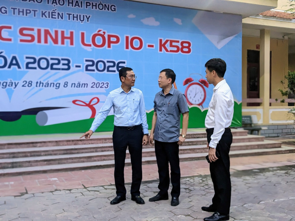 Trong 02 ngày 28 và 29/8, Giám đốc Sở Giáo dục và Đào tạo thành phố Bùi Văn Kiệm đã đi kiểm tra công tác chuẩn bị cho năm học mới 2023-2024 tại một số cơ sở giáo dục trên địa bàn quận Ngô Quyền, huyện Kiến Thụy và huyện An Lão. Cùng đi có lãnh đạo các phòng, ban chuyên môn của Sở.