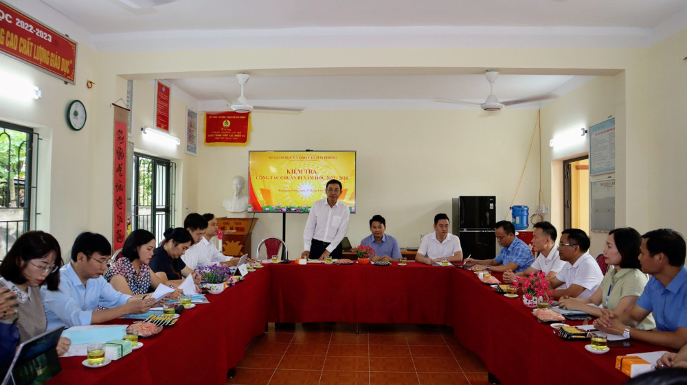 Đoàn công tác của Sở Giáo dục và Đào tạo đến kiểm tra tại các đơn vị, gồm: Trường Tiểu học Lê Hồng Phong, Trường THPT Thái Phiên (quận Ngô Quyền); Trường Tiểu học thị trấn Núi Đối, Trường THPT Kiến Thụy (huyện Kiến Thụy); Trường THCS Lương Khánh Thiện và Tiểu học Nguyễn Du (huyện An Lão).