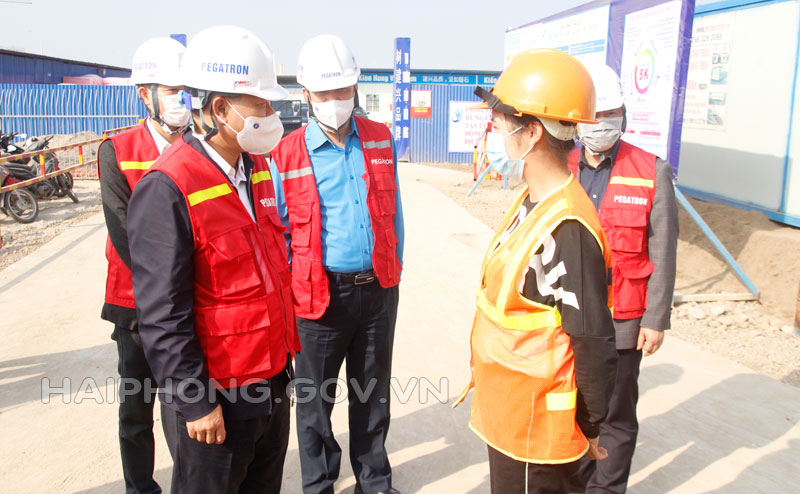 Tại dự án của Công ty TNHH Pegatron Việt Nam đang trong quá trình xây dựng, có hơn 300 công nhân lao động làm việc, đồng chí Lê Trung Kiên, Trưởng Ban Quản lý Khu Kinh tế Hải Phòng yêu cầu nhà đầu tư và nhà thầu cần kiểm soát chặt chẽ lịch trình đi lại, quê quán của công nhân lao động và đội ngũ chuyên gia. Bởi chỉ một người tiếp xúc với F1 là toàn bộ hoạt động xây dựng nhà máy sẽ phải dừng lại, ảnh hưởng đến tiến độ dự án. Đối với lao động ở tỉnh xa hoặc vùng có dịch, đồng chí đề nghị Công ty cần tạo điều kiện để công nhân đón Tết tại chỗ, tuyệt đối không được nợ lương.