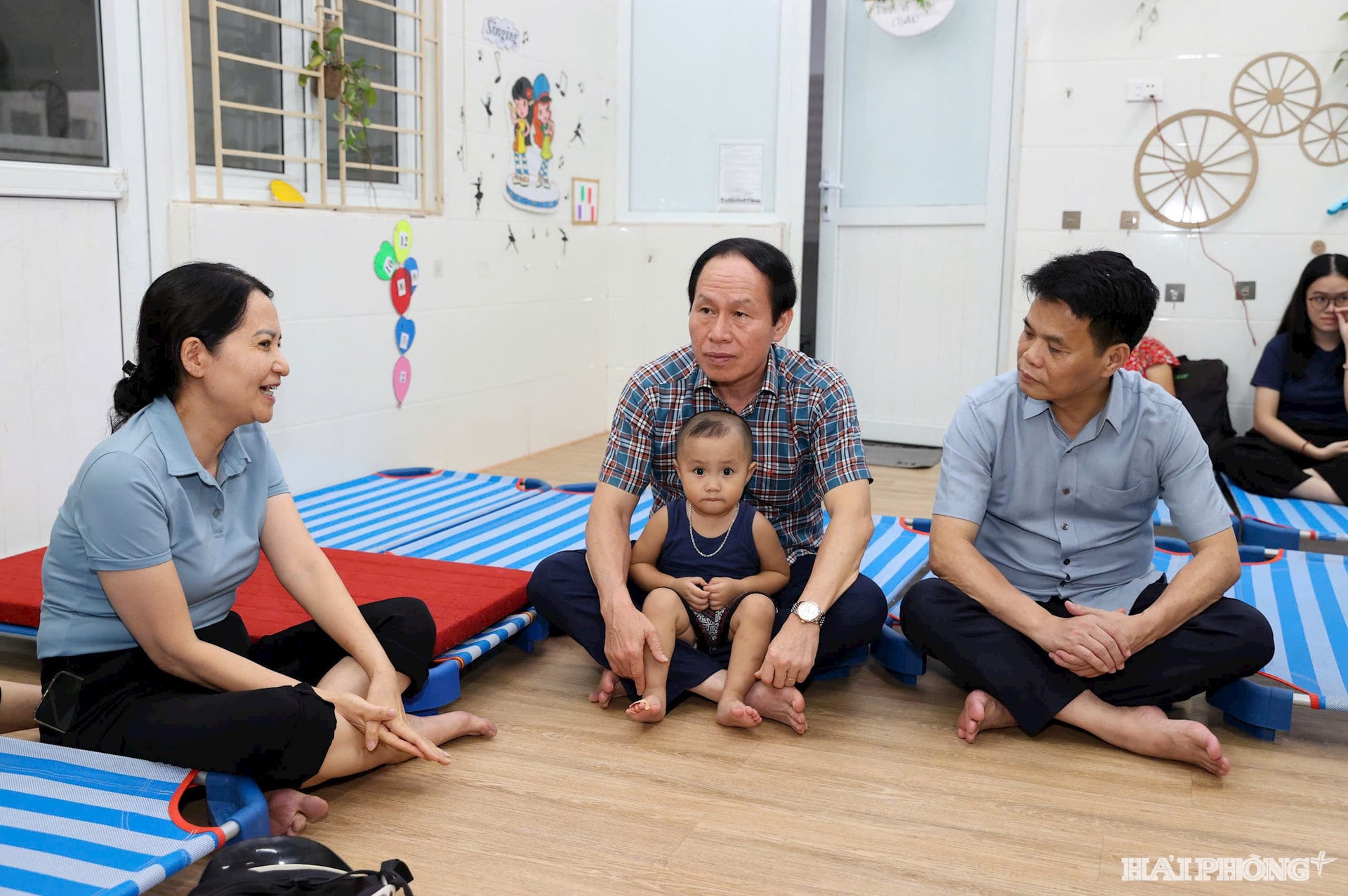 Các đồng chí lãnh đạo thành phố đã cần thăm hỏi, động viên những người dân đang tạm lánh tránh bão số 3.