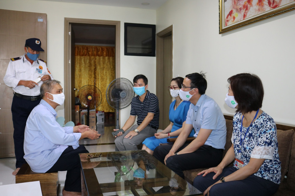 Tại hộ dân mới định cư tại chung cư H4 phường Đồng Quốc Bình, đoàn ghi nhận tổ dân phố nơi đây đã tuân thủ nghiêm túc quy định phòng chống dịch, khi khách đến phải liên hệ đăng ký với Ban quản lý tòa nhà, sau khi có xác nhận của gia chủ, đo thân nhiệt, sát khuẩn và đeo khẩu trang mới được lên.