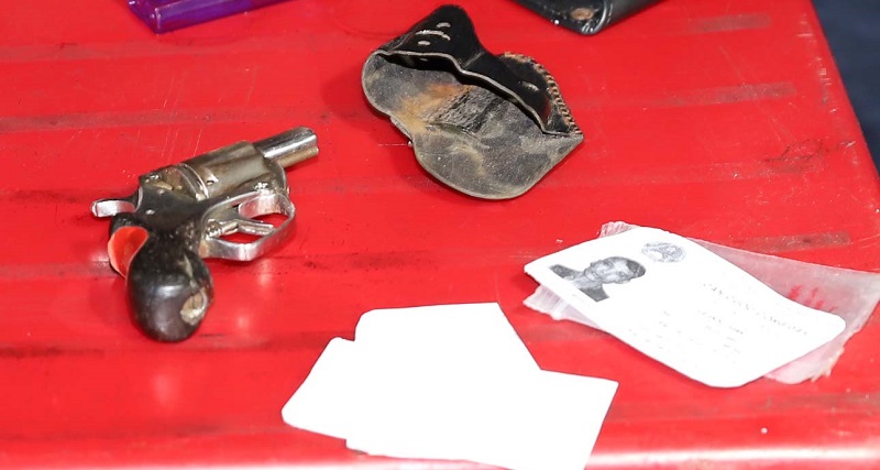 Khẩu súng colt quay tự chế của đối tượng Lê Đức Tuân bị thu giữ tại hiện trường