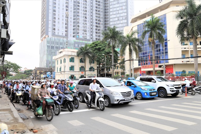 Ngay từ sáng nay 10/4, đa phần người tham gia giao thông đã nắm bắt được thông tin về việc điều chỉnh phân luồng giao thông. Ảnh: Tiến Phước