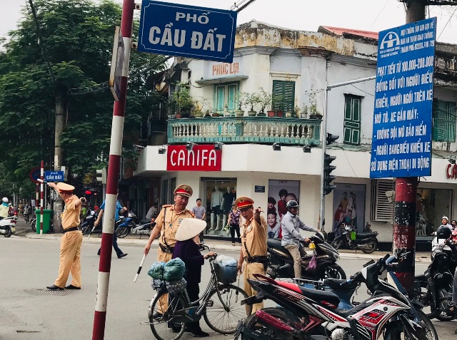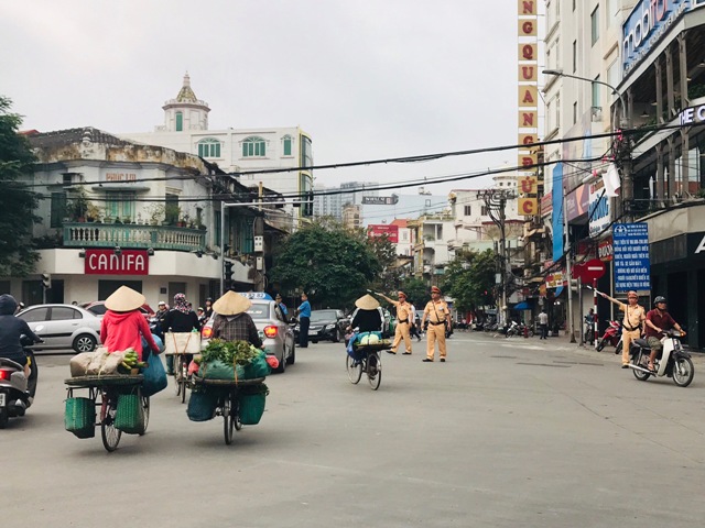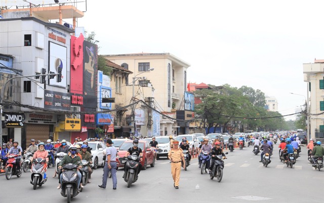 Cảnh sát giao thông, Thanh tra giao thông tích cực hướng dẫn, điều tiết giao thông. Các lực lượng này cũng đang phối hợp với chính quyền địa phương đẩy mạnh tuyên truyền, hướng dẫn người dân thực hiện việc đảo chiều giao thông. Ảnh: Tô Thành