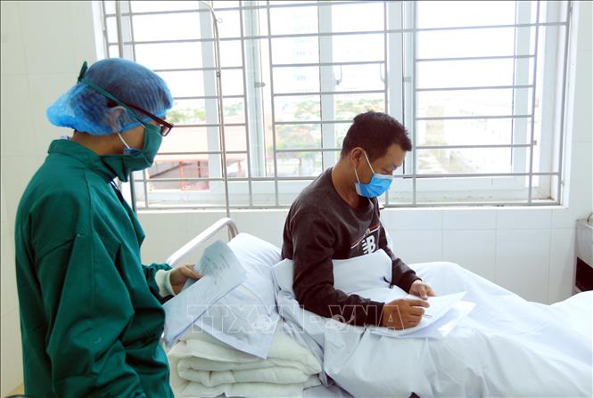 Các y, bác sĩ luôn tận tình hỏi thăm, động viên và chăm sóc những công dân của Trung Quốc tại khu cách ly của Bệnh viện Việt Tiệp. Ảnh: An Đăng/TTXVN.