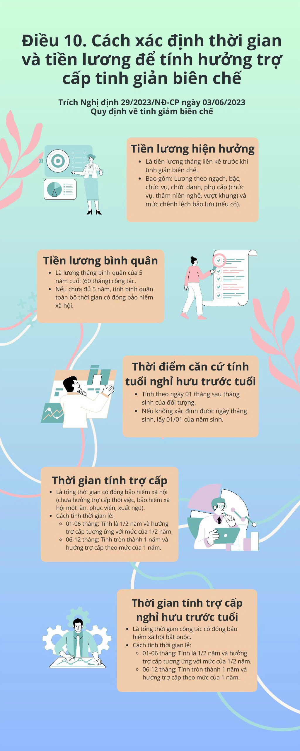 Trong đó, Điều 10 quy định về cách xác định thời gian và tiền lương để tính hưởng trợ cấp tinh giản biên chế, cụ thể như sau: