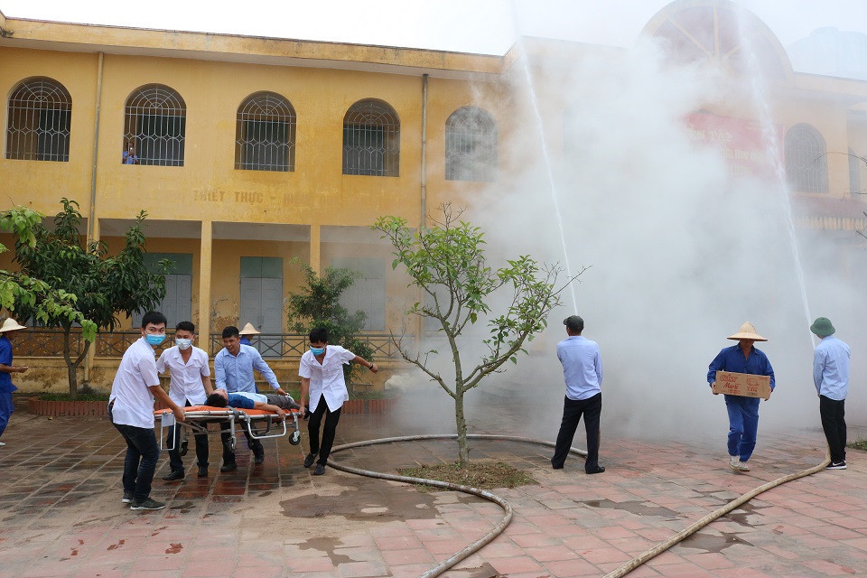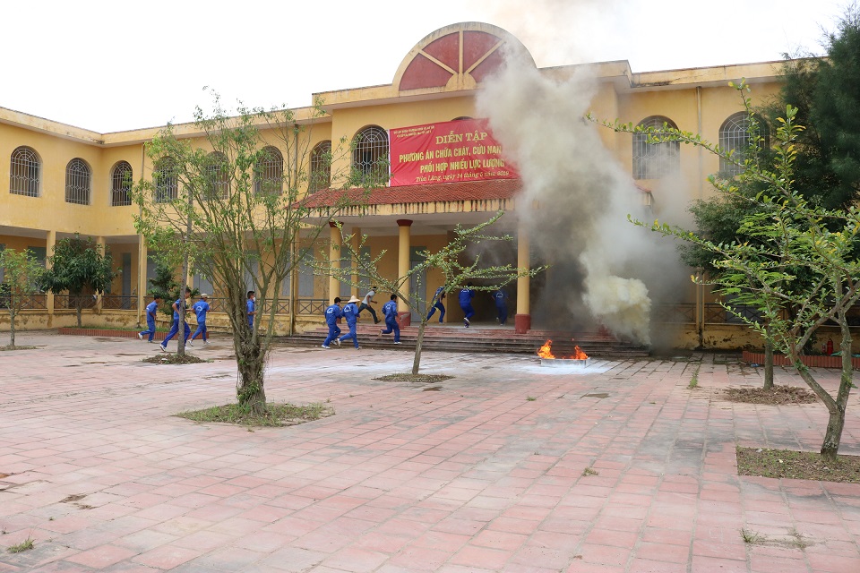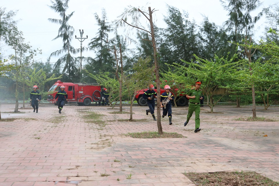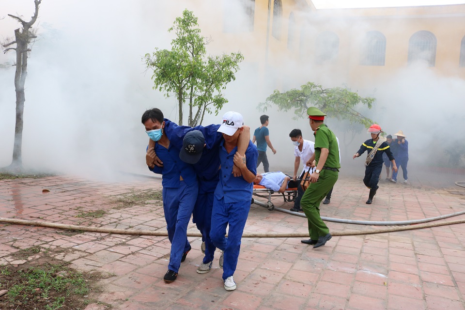 Theo đó, tình huống giả định vào hồi 16h30’, ngày 24-5, cán bộ, công nhân viên cơ sở cai nghiện bất ngờ phát hiện đám cháy, báo động xảy ra cháy tại khu vực nhà hậu cần, chất cháy là: gas, thiết bị điện, bàn ghế…, nguyên nhân do chập điện, với diện tích đám cháy khoảng 300m2.