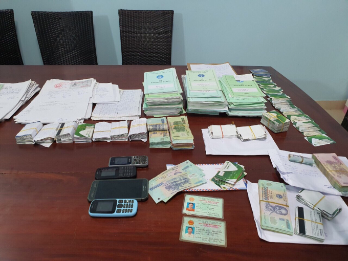Để hợp thức hóa hành vi cho vay nặng lãi, các đối tượng trên yêu cầu người vay phải thế chấp sổ BHXH và làm hợp đồng vay tiền. Khám xét chỗ ở của các đối tượng, cơ quan Công an đã thu giữ 260 thẻ tín dụng (ATM); 207,6 triệu đồng; 8 danh sách người vay; 121 hợp đồng vay; 120 sổ BHXH; 4 điện thoại di động các loại.