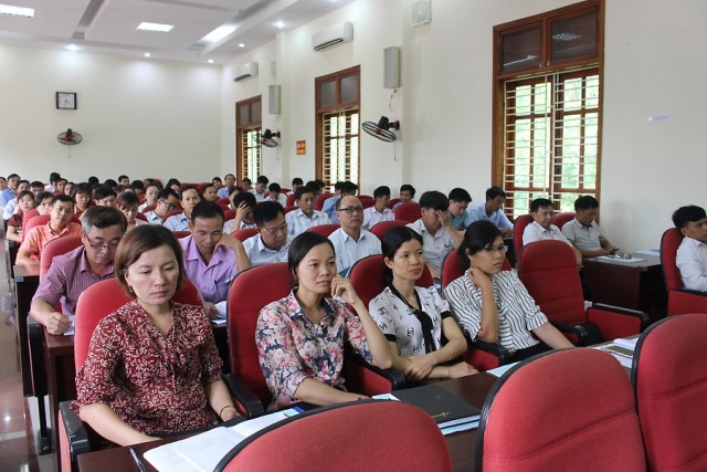 Hơn 100 cán bộ xã dự hội nghị.