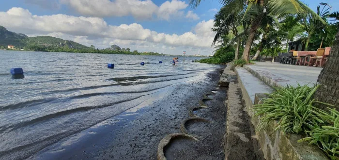 Có mặt tại 1 bãi tắm tự phát thuộc thôn 6, xã Ngũ Lão, PV Chuyên đề An ninh Hải Phòng ghi nhận, công trình bãi tắm gồm nhiều hạng mục được hộ dân xây dựng như mái tôn, bờ sân gạch, nhà vệ sinh, bậc lên xuống, ghế đá cùng nhiều loại cây xanh…