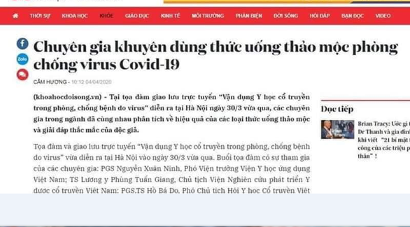 Cục An toàn thực phẩm, Bộ Y tế vừa có khuyến cáo cẩn trọng với thông tin quảng cáo ‘trà thanh nhiệt Dr Thanh có tác dụng dự phòng, hỗ trợ điều trị Covid-19’ và cho biết đang phối hợp với Bộ Thông tin truyền thông để xử lý theo quy định.