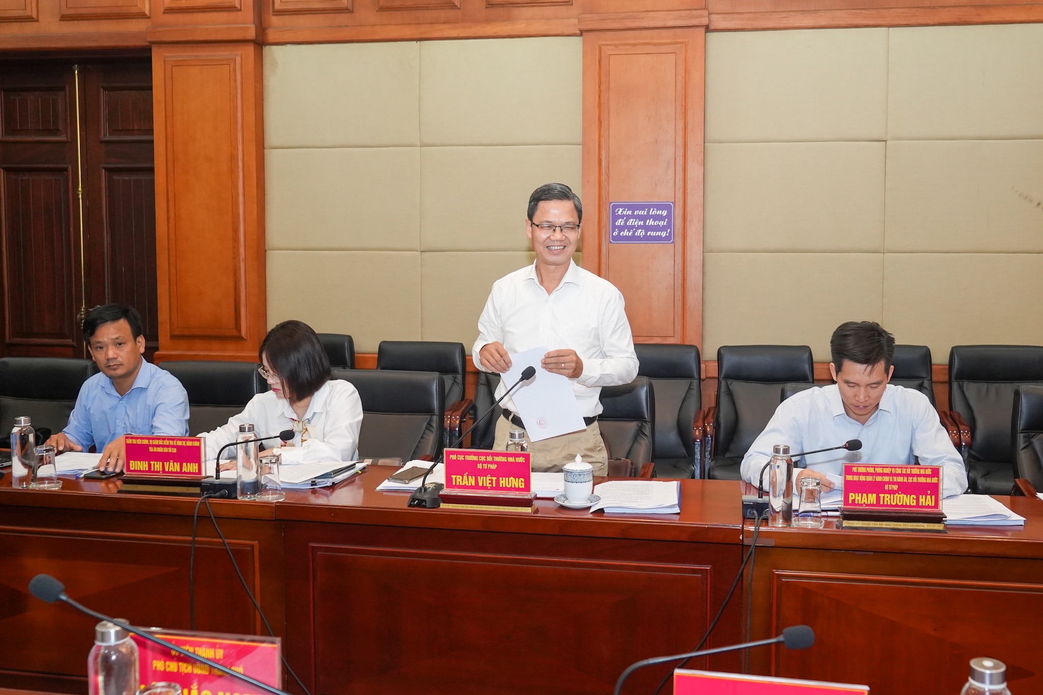 Kiến nghị tại cuộc làm việc, thành phố Hải Phòng đề nghị Bộ Tư pháp nghiên cứu, phối hợp với Bộ Tài chính ban hành Thông tư quy định về nội dung và định mức chi trong công tác quản lý nhà nước về bồi thường làm cơ sở cho địa phương thực hiện xây dựng dự toán và quyết toán kinh phí bồi thường nhà nước hàng năm. Cùng với đó, tăng cường bồi dưỡng kỹ năng, kiến thức về bồi thường nhà nước cho những người thực thi công vụ tại các cơ quan, đơn vị, nhất là trong các cơ quan tiến hành tố tụng, cơ quan giải quyết TTHC liên quan đến lĩnh vực đất đai, nhà ở, xuất nhập khẩu, cấp giấy phép; xây dựng cơ chế thống nhất từ Trung ương đến địa phương để nâng cao hiệu quả công tác hỗ trợ, hướng dẫn người bị thiệt hại và giải quyết yêu cầu bồi thường khi tiếp nhận, xử lý hồ sơ yêu cầu bồi thường…