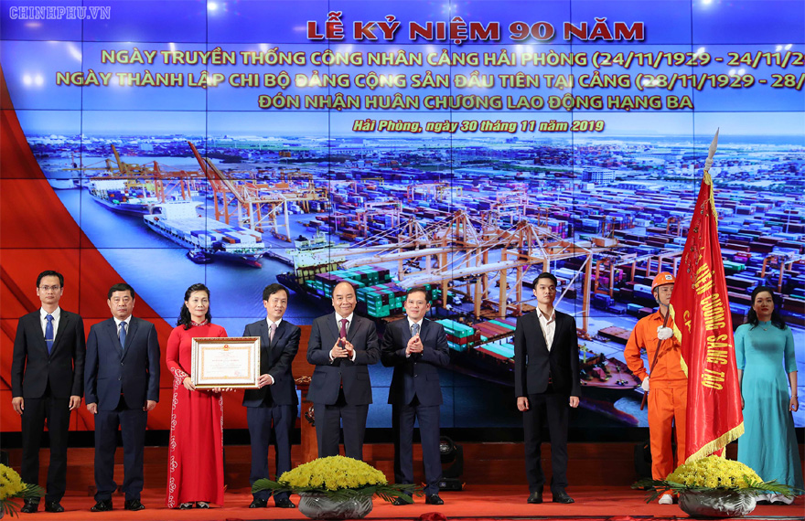 Lễ kỷ niệm 90 năm Ngày truyền thống Công nhân Cảng Hải Phòng và 90 năm Ngày thành lập Chi bộ cộng sản đầu tiên tại Cảng Hải Phòng, đón nhận Huân chương Lao động hạng Ba vừa được tổ chức tại Hải Phòng với sự tham dự của Thủ tướng Nguyễn Xuân Phúc.