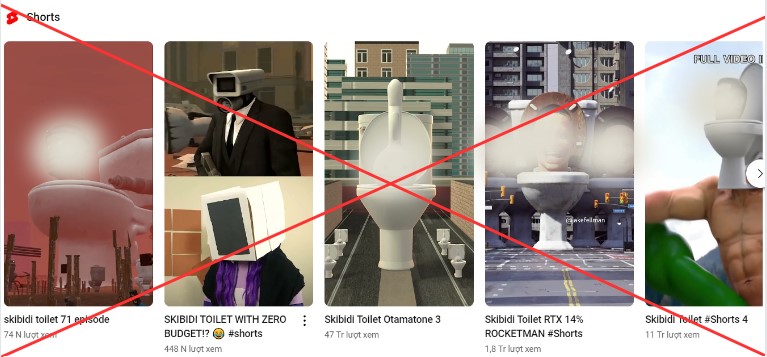 Không chỉ “Skibidi Toilet”, rất nhiều những video hay những kênh đội lốt “dành cho trẻ em” trên Youtube và các nền tảng mạng xã hội khác, có chứa nội dung nhảm nhí, độc hại đang được lan truyền rộng rãi, gây ảnh hưởng đến trẻ em.