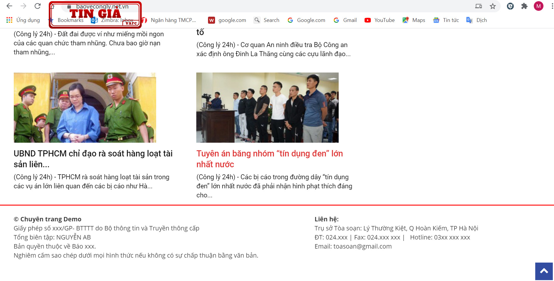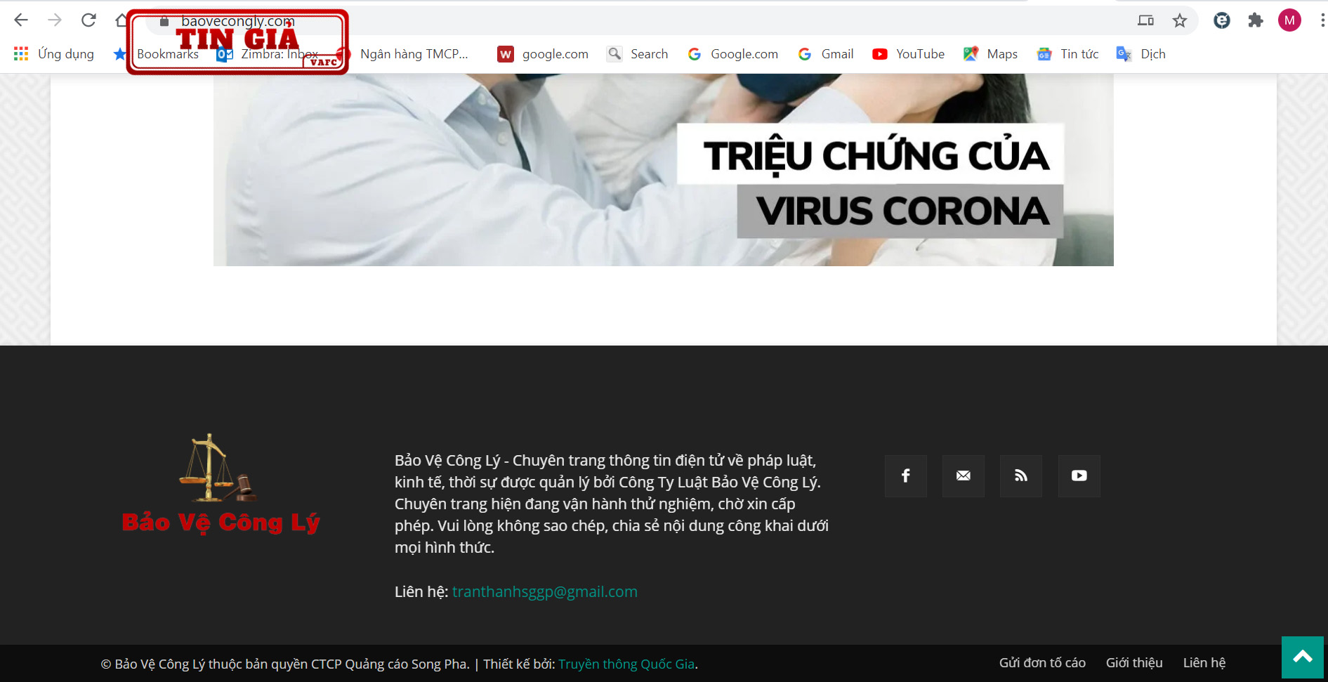 Website có tên miền https://baovecongly.net.vn mạo danh đang sử dụng măng-séc của Chuyên trang điện tử Bảo vệ Công lý. Các thông tin được đăng tải trên trang https://baovecongly.net.vn có nhiều bài lấy nguồn từ Báo Công lý nhưng chưa có sự chấp thuận bằng văn bản của Báo Công lý.