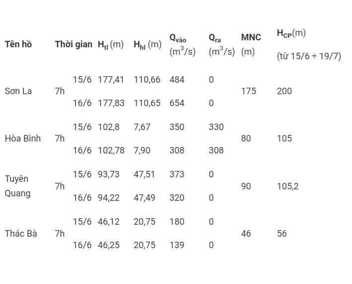 Dự báo đến 07h 17.6.trên sông Hồng tại trạm Hà Nội là 0,70m; trong 36h tới mực nước tại Phả Lại cao nhất có khả năng ở mức 0,5m.