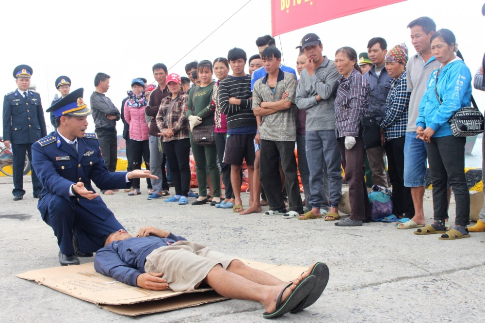 hướng dẫn ngư dân các kỹ năng xử lý tình huống khi gặp sự cố trên biển, để mỗi