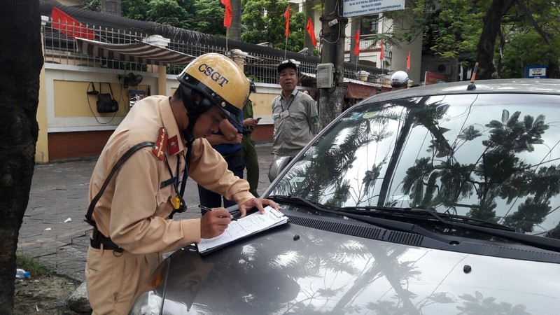 Lực lượng công an xử lý xe ô tô đậu đỗ sai quy định
